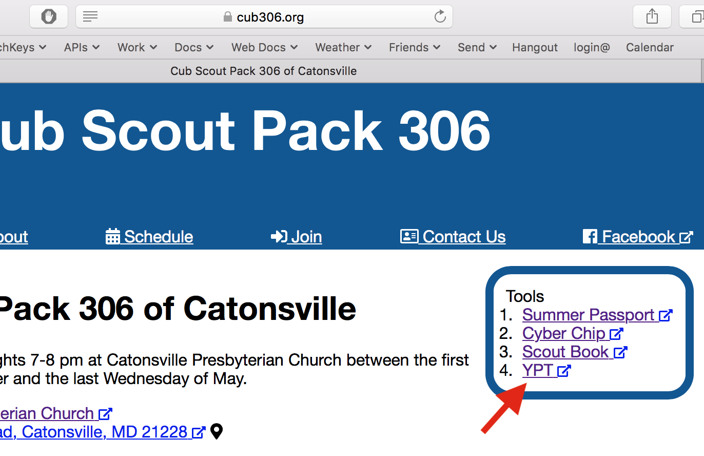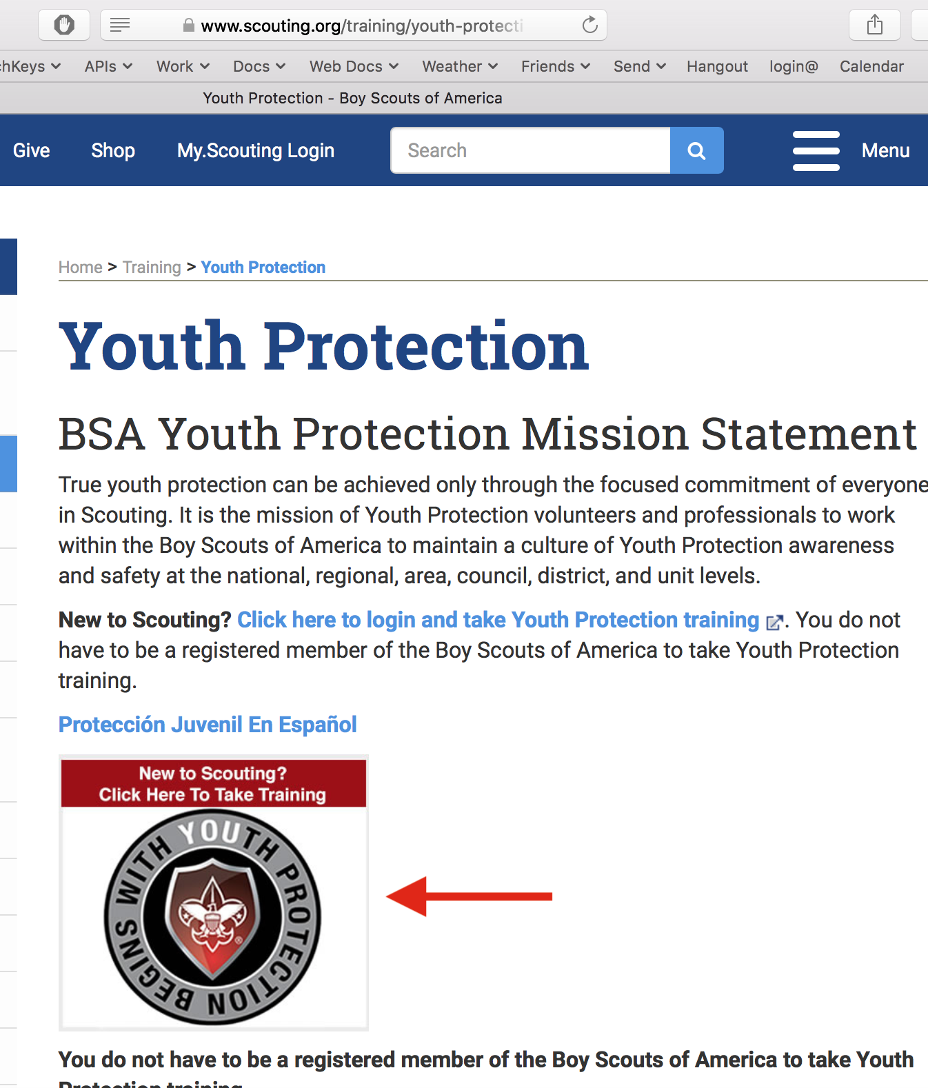 You can start by clicking on the "YPT" link on the Pack 306 Site Tool Box or go directly to https://www.scouting.org/training/youth-protection/