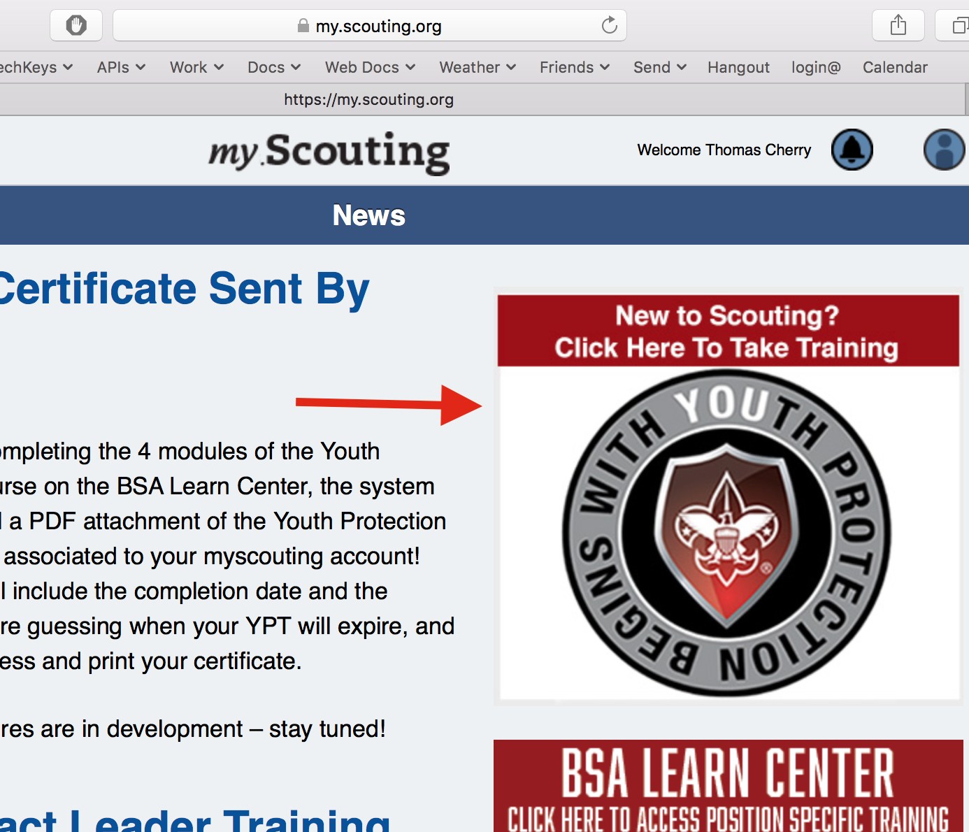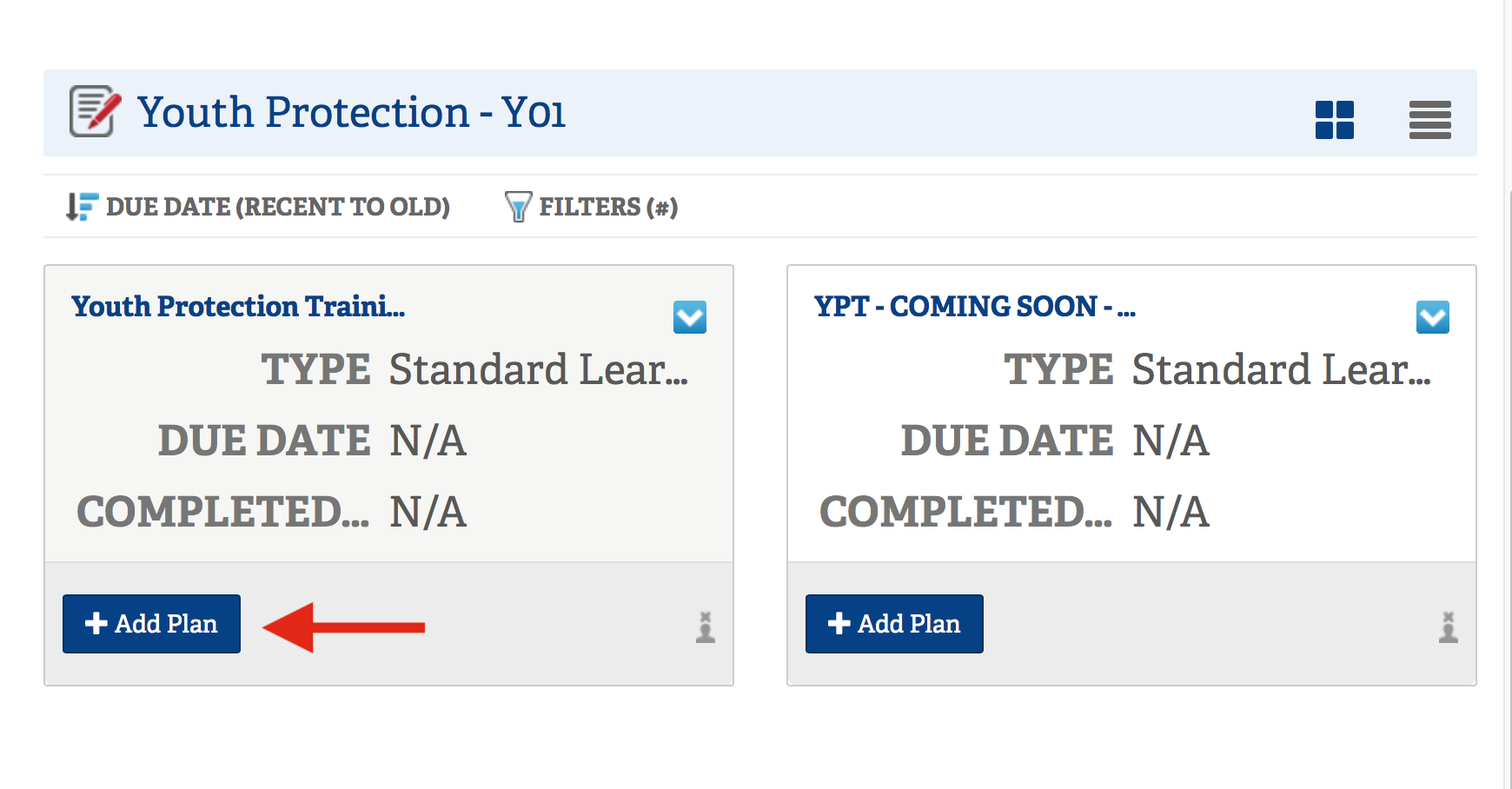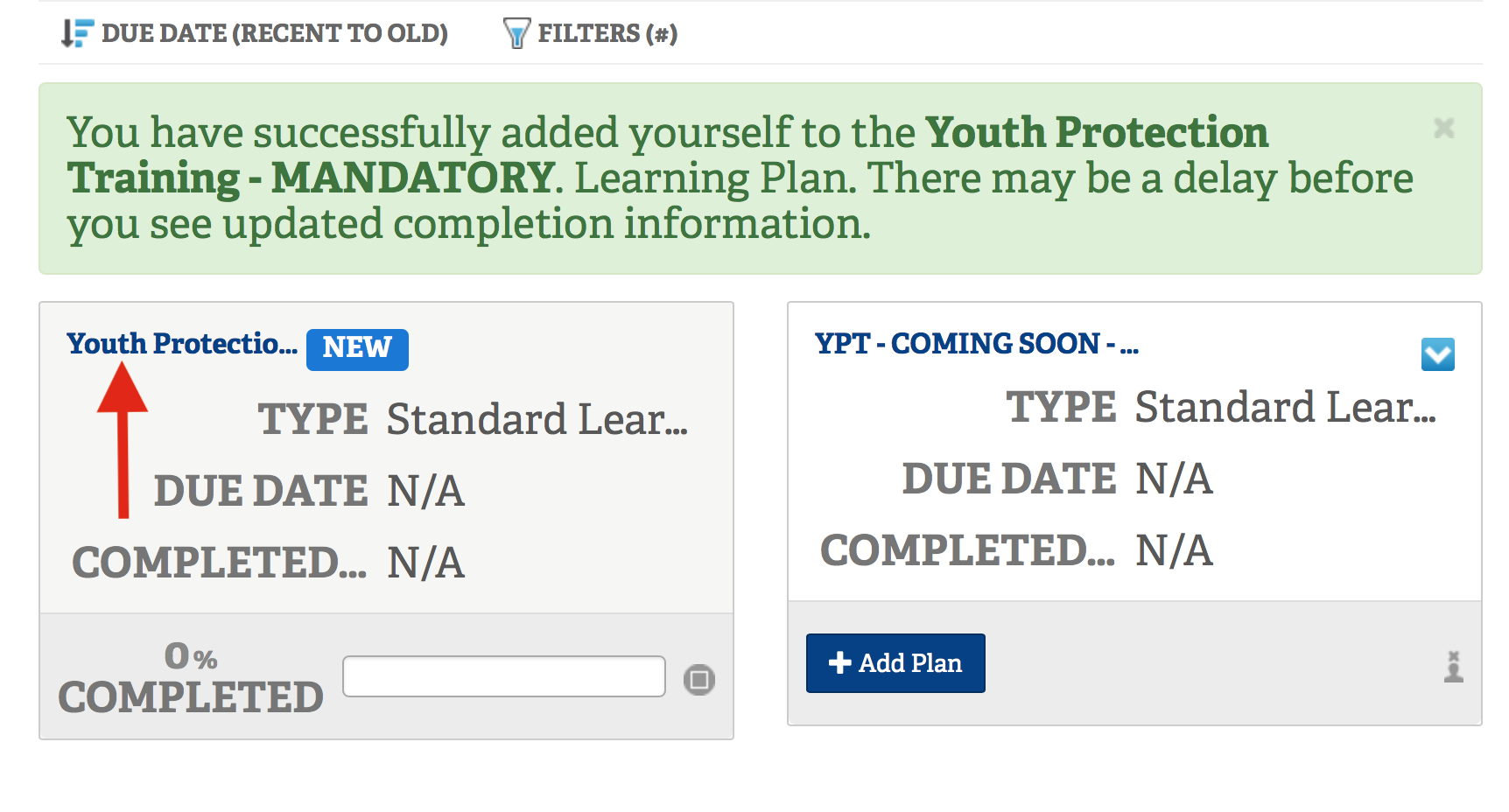Once you login, add the Youth Protection Training - MANDITORY" course to your plan.
