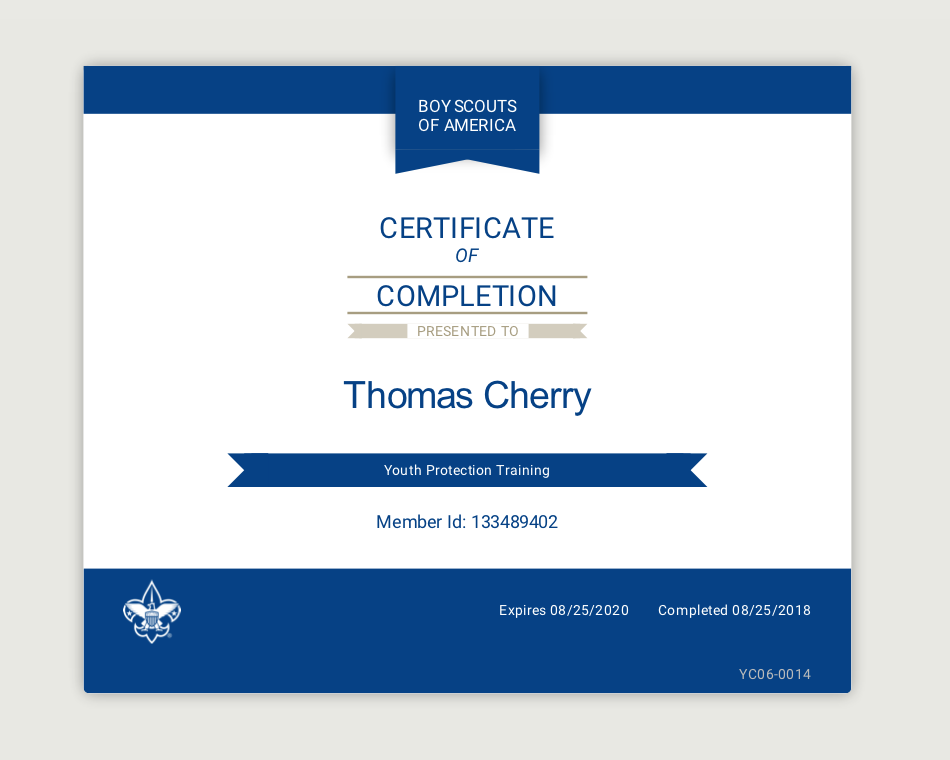 Even if your told you need to go print your Certificate, you don't, there is a notice on https://my.scouting.org stating that your Certificate will be emailed to you.